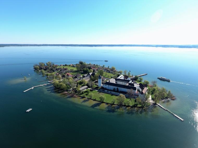 Mit Chiemseefischern, Handwerkern, Schmuck- und Keramikherstellern und eigener Feuerwehr ist die Inselgemeinde völlig eigenständig und ist somit die kleinste Gemeinde Bayerns. Die Fraueninsel beheimatet außerdem das Benediktinerinnenkloster "Frauenwörth". Das Kloster wurde bereits 782 gegründet und ist eines der ältesten Klöster Deutschlands. Der Campanile und die 1200 Jahre alte Münsterkirche sind die Wahrzeichen der Insel. Die Schwestern des Kloster sind berühmt für ihr handgemachtes Marzipan sowie den "Chiemseer Klosterlikör". Schauen Sie also unbedingt noch im Klosterladen vorbei, bevor Sie wieder auf den Dampfer steigen.