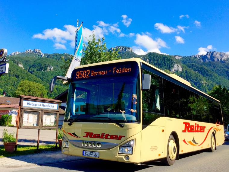 Sie können mit gültiger Bernauer Gästekarte die Buslinie RVO 9502, die den Chiemsee (Bernau-Felden) mit Aschau und Sachrang verbindet, das ganze Jahr über kostenlos nutzen.